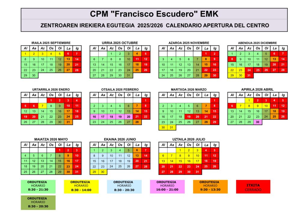 Irekiera ordutegiko egutegia