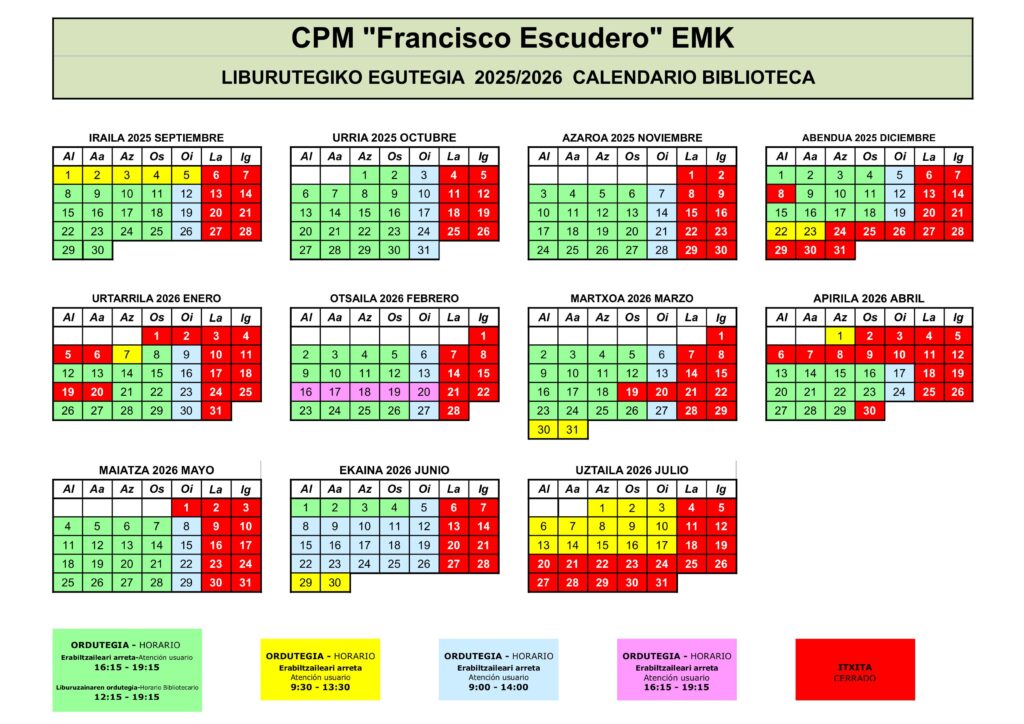 Liburutegiko Irekiera Egutegia
