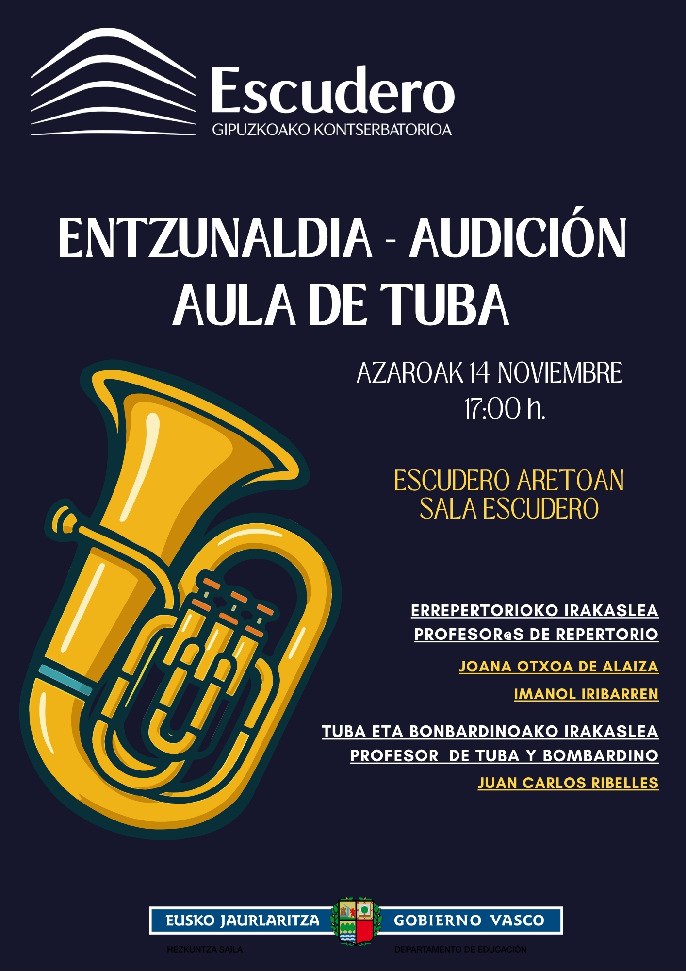 Data - Fecha14 azaroa, 2025Hasiera ordua - Hora de inicio17:00Amaiera ordua - Hora final18:15Tokia - LugarEskudero Maisua AretoaAntolatzailea - OrganizaFrancisco Escudero Musika Kontserbatorio ProfesionalaEkintza mota - Tipo de actividad: PROGRAMA DESKRIBAPENA - DESCRIPCIÓNTokiko informazioa - Detalles del LugarTokia - LugarEskudero Maisua AretoaHiria - CiudadDonostia - San Sebastián |||:: Easo Kalea, 45, 20006 Donostia, Gipuzkoa